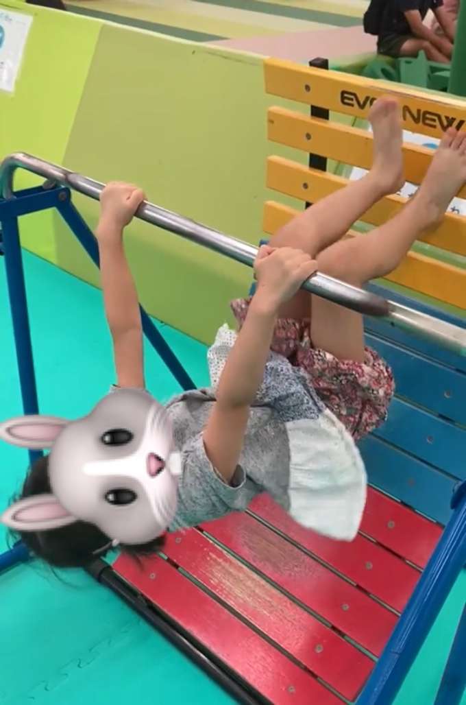 まだ難しいし、何より怖がるかな?と思っていたら、手伝わなくても、自分で体を支えながら補助板を使って、逆上がりができました♡