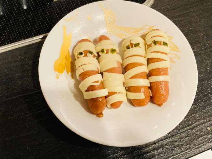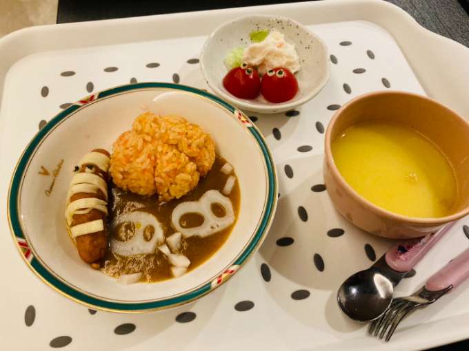 カレーにガイコツレンコンやウインナーミイラを乗せて完成♡