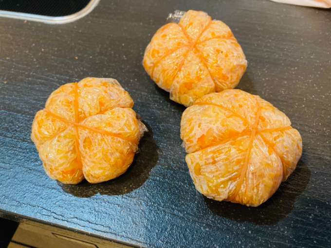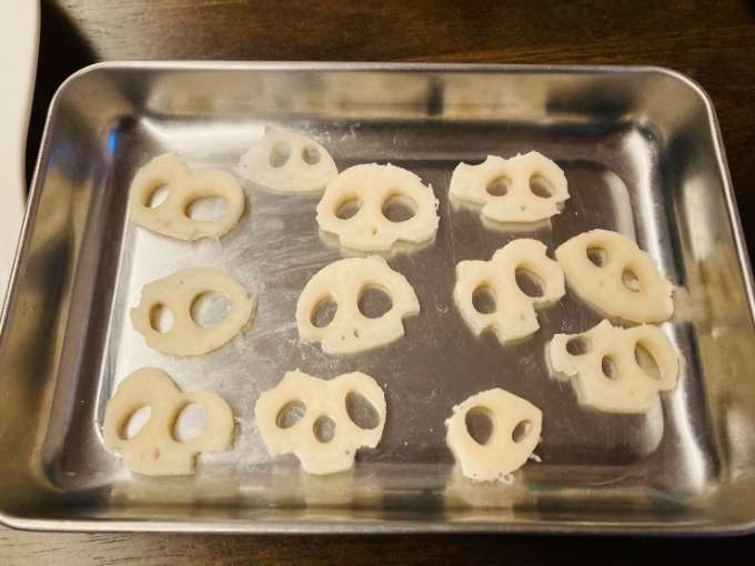 その後に、⬜︎の型で、両方の下の部分をカットすると、よりガイコツに♡
