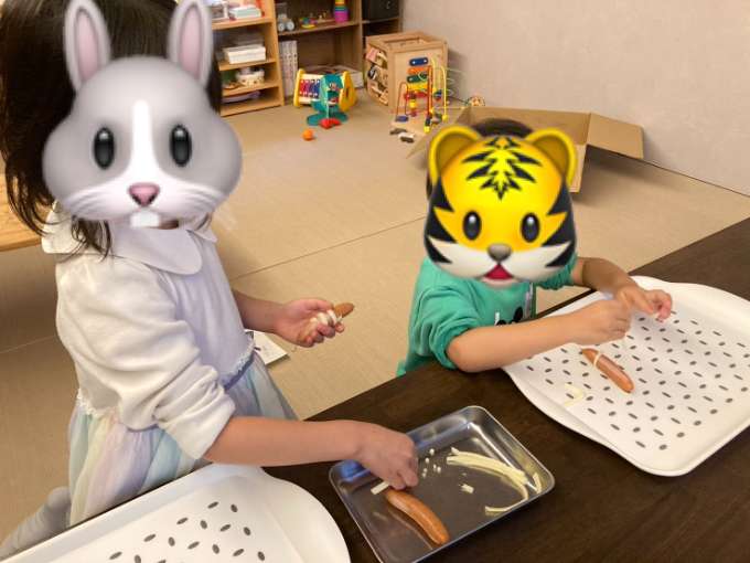 シャウエッセンをレンジでチンして粗熱が取れたら、細く切ったチーズを巻いてもらいます♪