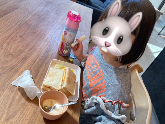 楓(未就園児)は椅子に座る場合は、膝の上に座らせないといけません。