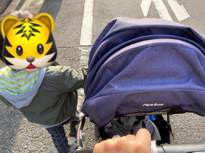 楓をすごい褒めたら、嬉しそうに「家までずっと歩けるよ」と歩いてくれるのですが、それを見て褒められたい琴も「やっぱり全然疲れていないから大丈夫!琴が歩く!」と言って歩くようになりました(笑)