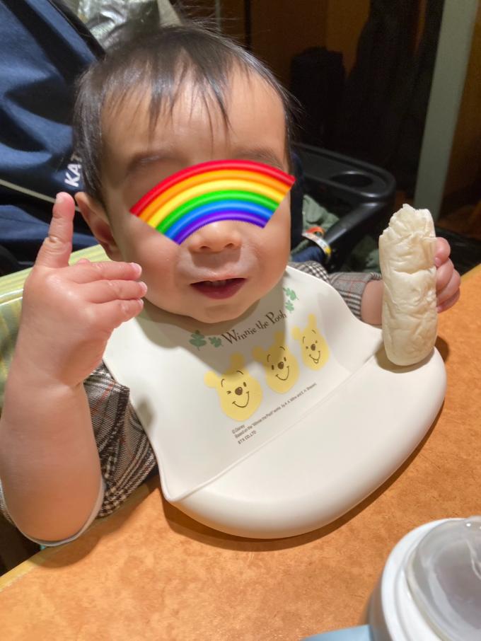 零は持参したパンと離乳食。