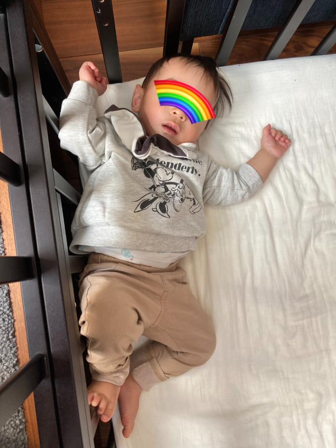 ベビーベッドに入れると、すぐに寝ていました。