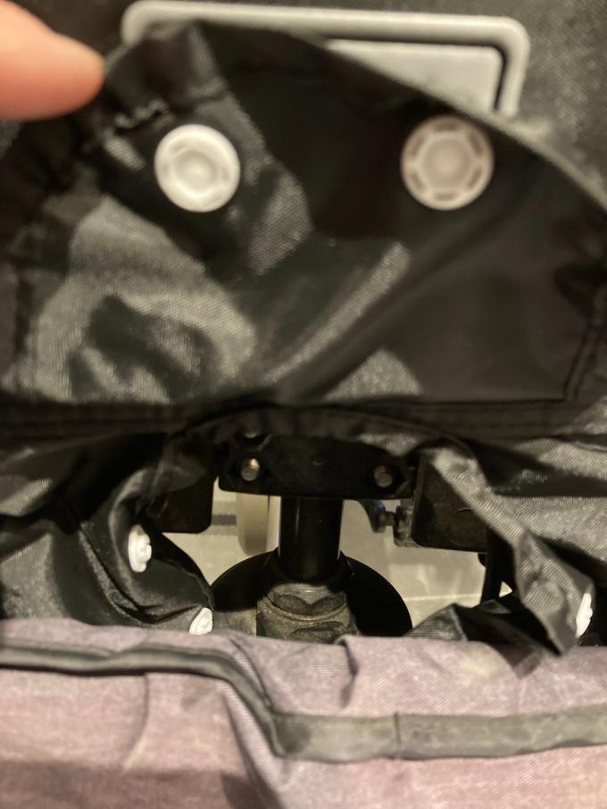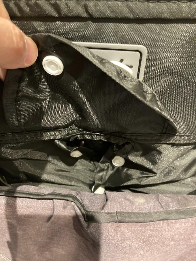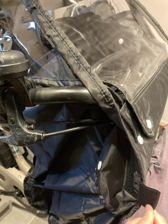 ステーの下で留めないと、レインカバー全体の形状保持力が弱くなるので、要注意⚠️